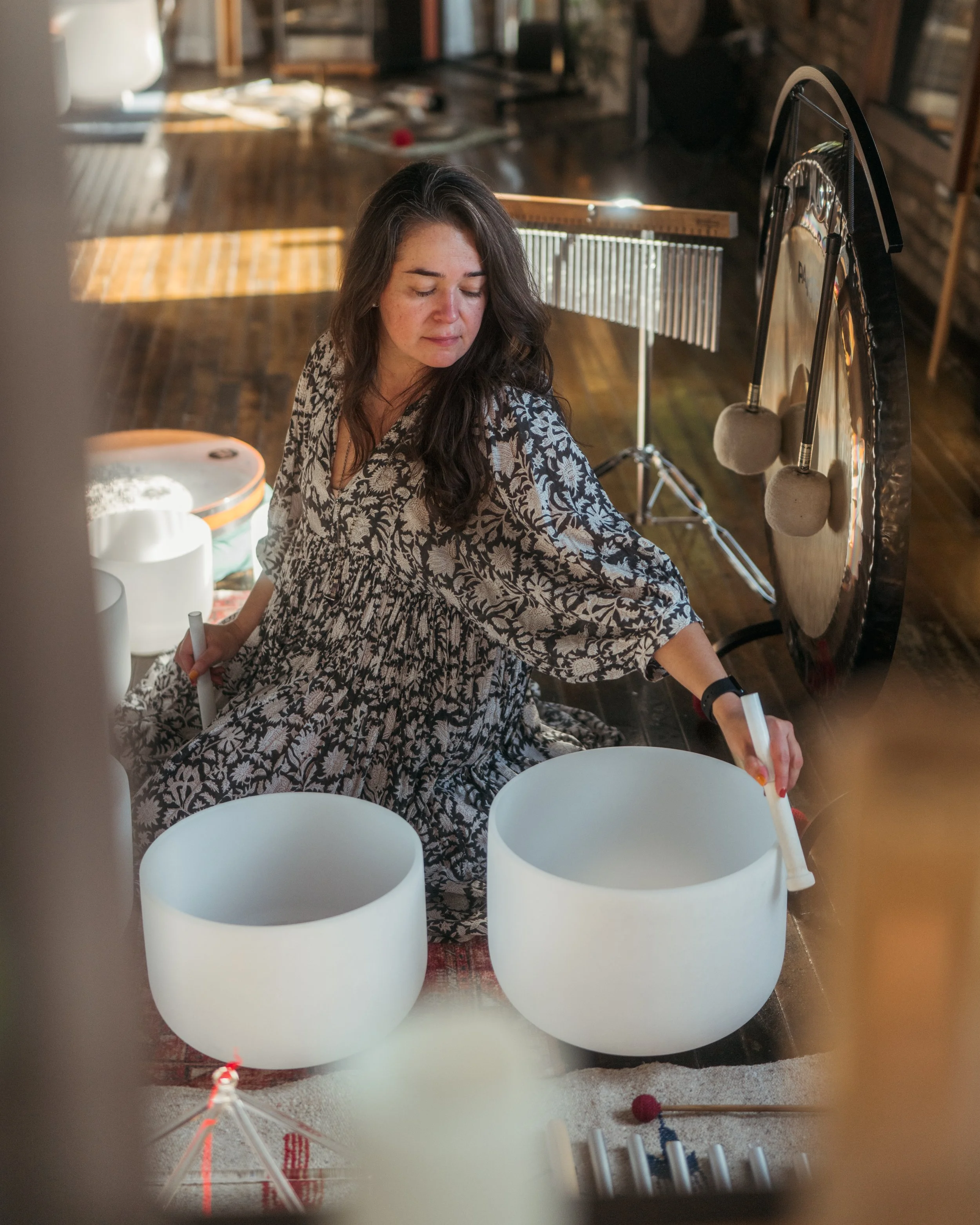 We close here, and it's where most people exhale for the first time all day. Reiki energy supports your body's balance while sound vibrations ripple through you, melting what's been heavy and leaving you with a quiet, settled sense of peace.